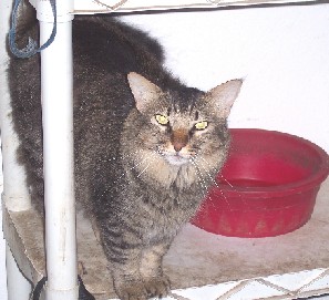 This is friendly, our outside cat. You cannot get past him without giving him some food, he knows how to trip you if needed!!